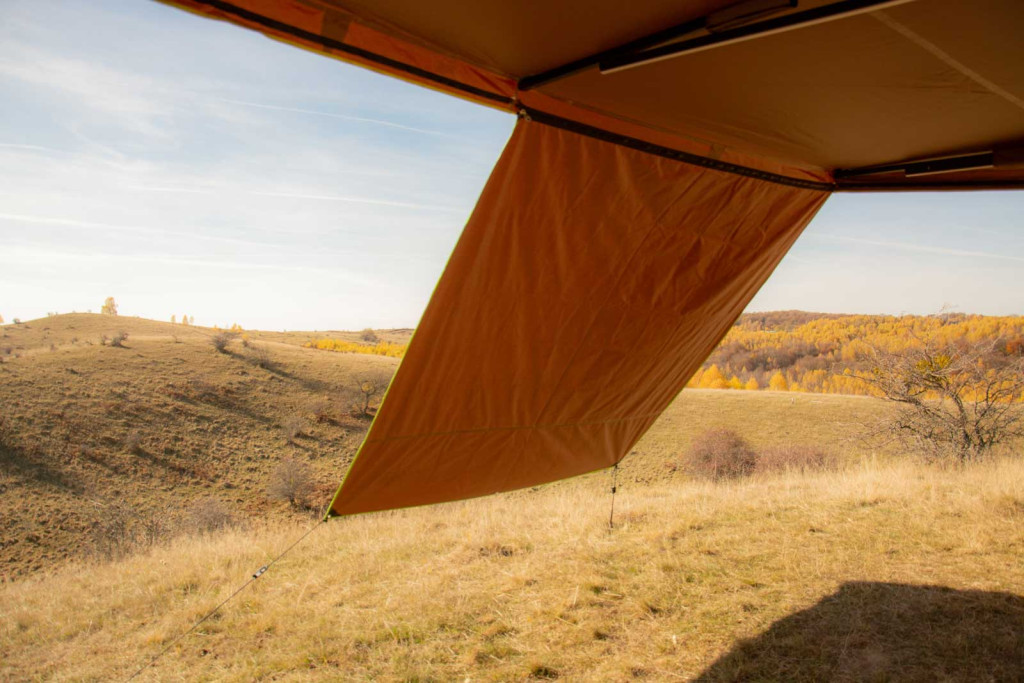 Spre deosebire de pereții laterali compleți, acest perete de umbră este ușor, compact și ușor de transportat. Se montează și se strânge rapid, fiind ideal pentru excursii scurte sau călătorii mai lungi.
