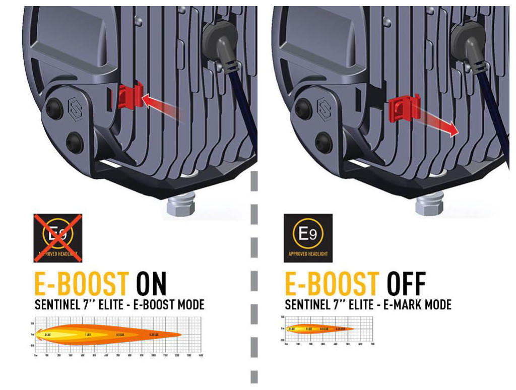 Ez a lámpa szabadalmaztatott E-Boost technológiával rendelkezik, ami azt jelenti, hogy van egy alacsonyabb teljesítményű üzemmód, valamint az E-boost mód, amely nagyobb teljesítményt ad és kihasználja az extra fényben rejlő lehetőségeket.